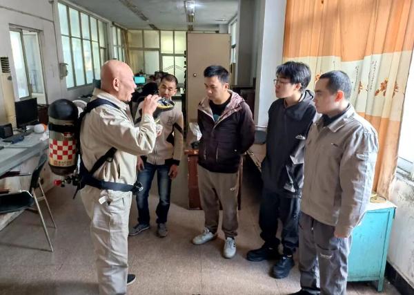 氨水作为锅炉脱硝系统的关键原料,其泄漏可能引发腐蚀、中毒、火灾等安全事故,是岗位安全防控的重点环节。为破解这一安全隐患,公司安保部结合锅炉岗位实际作业场景,针对性配备了正压式空气呼吸器、防化防护服等安全防护装备,为一线员工筑起“硬件防护墙”。同时指派经验丰富的消防人员现场指导,从装备原理、穿戴流程、操作规范到应急处置,逐一讲解演示正压式空气呼吸器防护服穿戴的使用与注意事项,及时纠正不规范操作,确保每位员工都能熟练掌握应急防护技能。